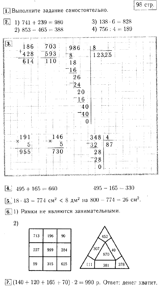 Решения домашних заданий по математике 3 класс Моро 98 упражнение