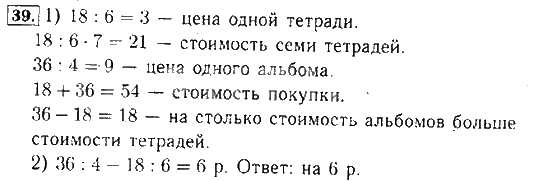 Решения домашних заданий по математике 3 класс Моро 39 упражнение
