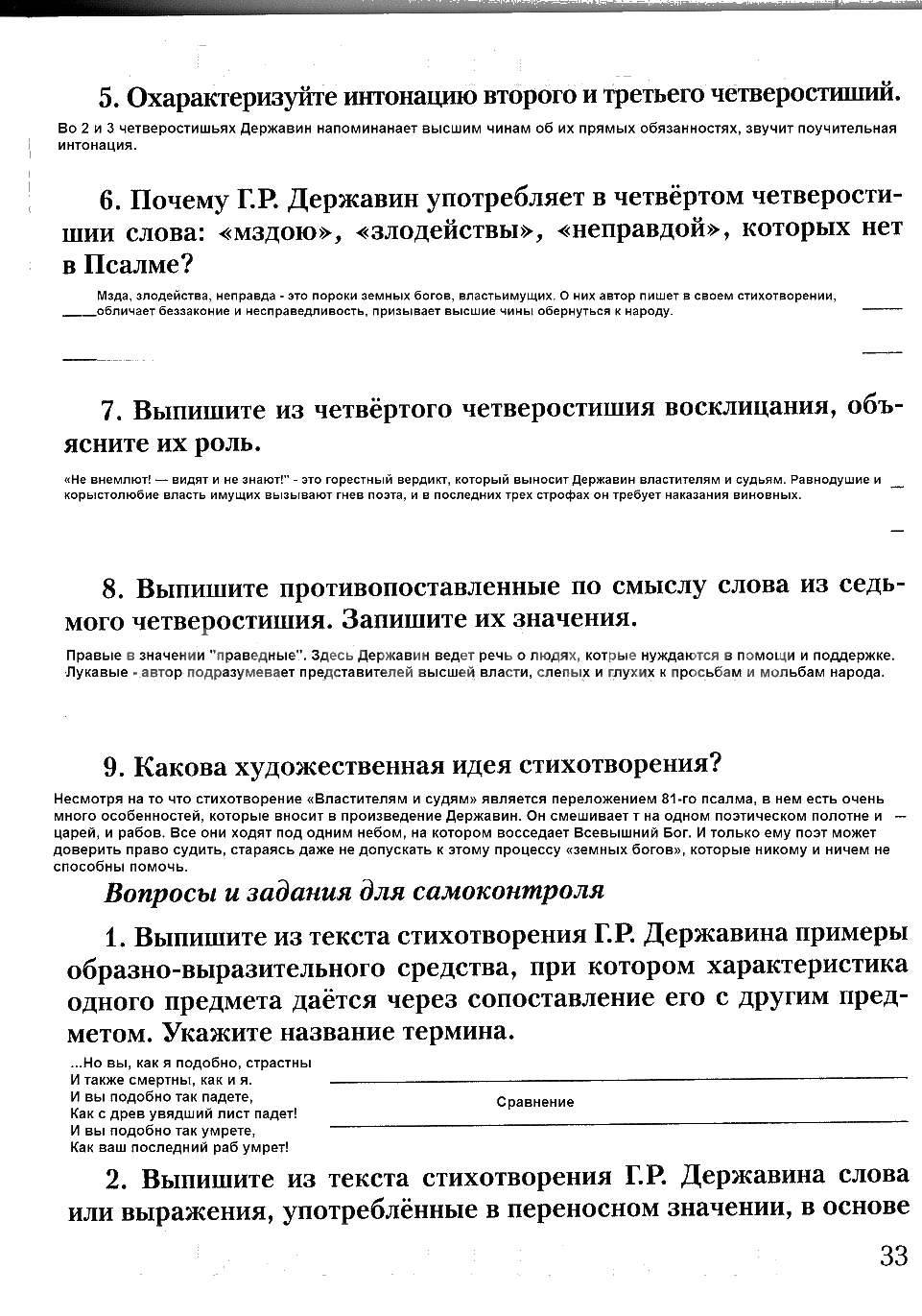 Решения домашних заданий по литературе 7 класс Соловьёва 33 упражнение рабочая тетрадь
