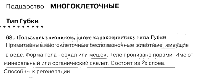 Решения домашних заданий по биологии 7 класс Захарова, Сонина 68 упражнение рабочая тетрадь
