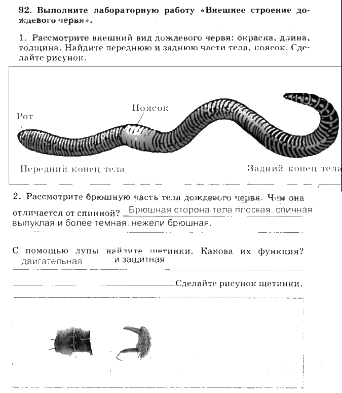 Решения домашних заданий по биологии 7 класс Захарова, Сонина 92 упражнение рабочая тетрадь