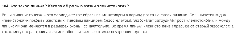 Решения домашних заданий по биологии 7 класс Захарова, Сонина 104 упражнение рабочая тетрадь