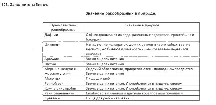Решения домашних заданий по биологии 7 класс Захарова, Сонина 105 упражнение рабочая тетрадь