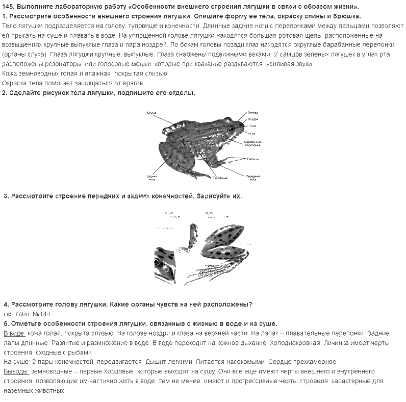 Решения домашних заданий по биологии 7 класс Захарова, Сонина 145 упражнение рабочая тетрадь