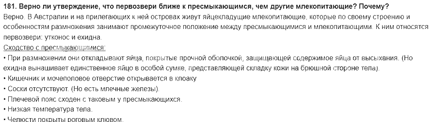 Решения домашних заданий по биологии 7 класс Захарова, Сонина 181 упражнение рабочая тетрадь