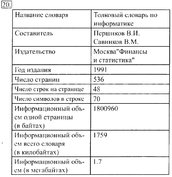 Решения домашних заданий по информатике 6 класс Босова 20 упражнение рабочая тетрадь