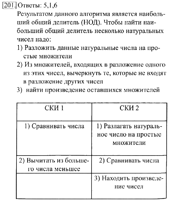 Решения домашних заданий по информатике 6 класс Босова 201 упражнение рабочая тетрадь