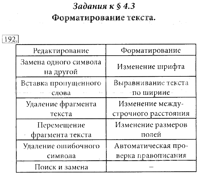 Решения домашних заданий по информатике 7 класс Босова 192 упражнение рабочая тетрадь