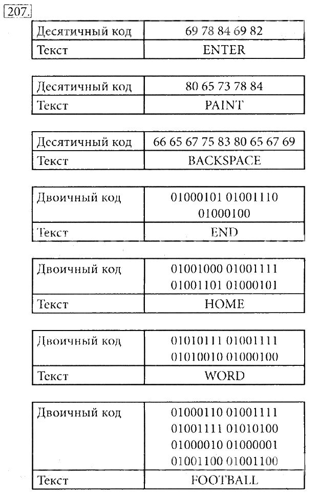 Решения домашних заданий по информатике 7 класс Босова 207 упражнение рабочая тетрадь