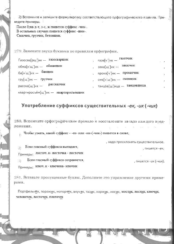 Решения домашних заданий по русскому языку 5 класс Львова 46 упражнение рабочая тетрадь