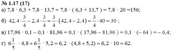 Решения домашних заданий по алгебре 7 класс Мордкович А.Г. 1.17(17) упражнение