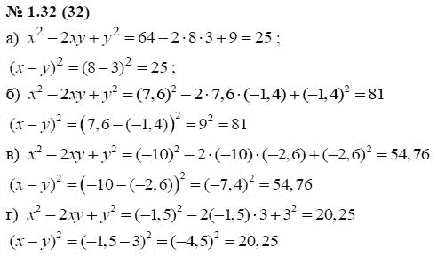 Решения домашних заданий по алгебре 7 класс Мордкович А.Г. 1.32(32) упражнение