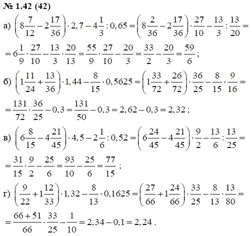 Решения домашних заданий по алгебре 7 класс Мордкович А.Г. 1.42(42) упражнение