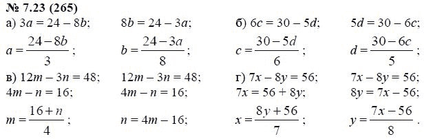 Решения домашних заданий по алгебре 7 класс Мордкович А.Г. 7.23(265) упражнение