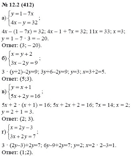 Решения домашних заданий по алгебре 7 класс Мордкович А.Г. 12.2(412) упражнение