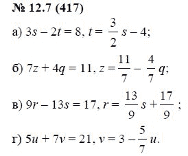 Решения домашних заданий по алгебре 7 класс Мордкович А.Г. 12.7(417) упражнение