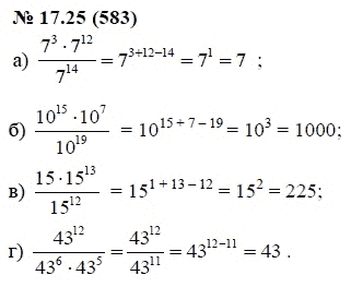 Решения домашних заданий по алгебре 7 класс Мордкович А.Г. 17.25(583) упражнение