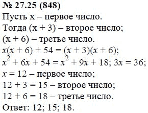 Решения домашних заданий по алгебре 7 класс Мордкович А.Г. 27.25(848) упражнение