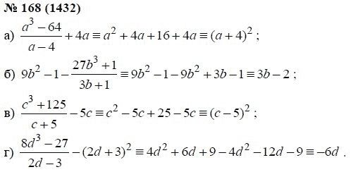 Решения домашних заданий по алгебре 7 класс Мордкович А.Г. 168(1432) упражнение