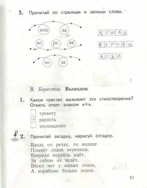 Решения домашних заданий по литературе 1 класс Ефросинина Л.А. 61 упражнение Рабочая тетрадь