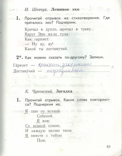 Решения домашних заданий по литературе 1 класс Ефросинина Л.А. 65 упражнение Рабочая тетрадь