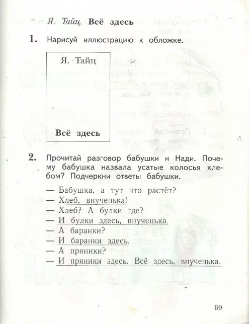 Решения домашних заданий по литературе 1 класс Ефросинина Л.А. 69 упражнение Рабочая тетрадь