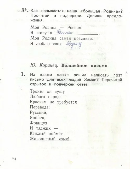 Решения домашних заданий по литературе 1 класс Ефросинина Л.А. 74 упражнение Рабочая тетрадь