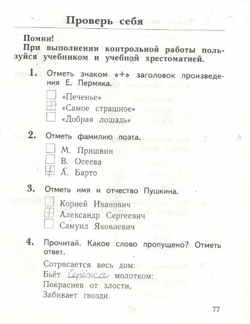 Решения домашних заданий по литературе 1 класс Ефросинина Л.А. 77 упражнение Рабочая тетрадь