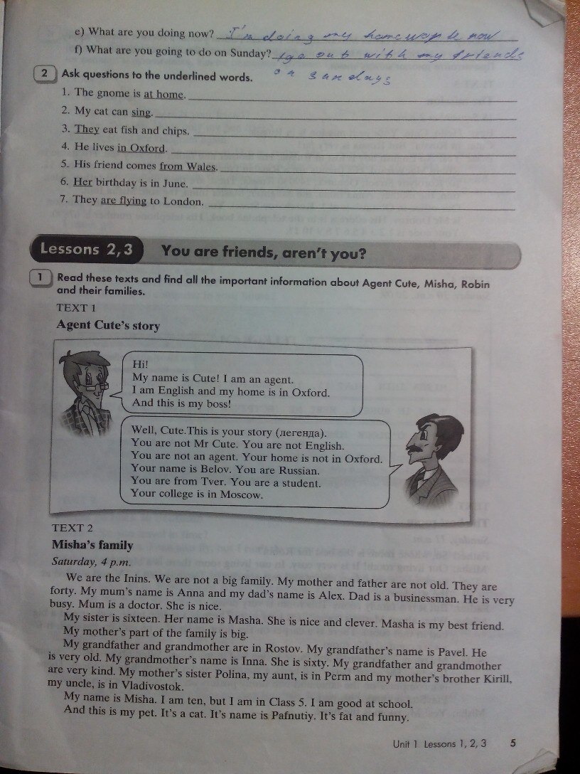 Решения домашних заданий по английскому языку 6 класс Кауфман К.И., Кауфман М.Ю. 5 упражнение Рабочая тетрадь