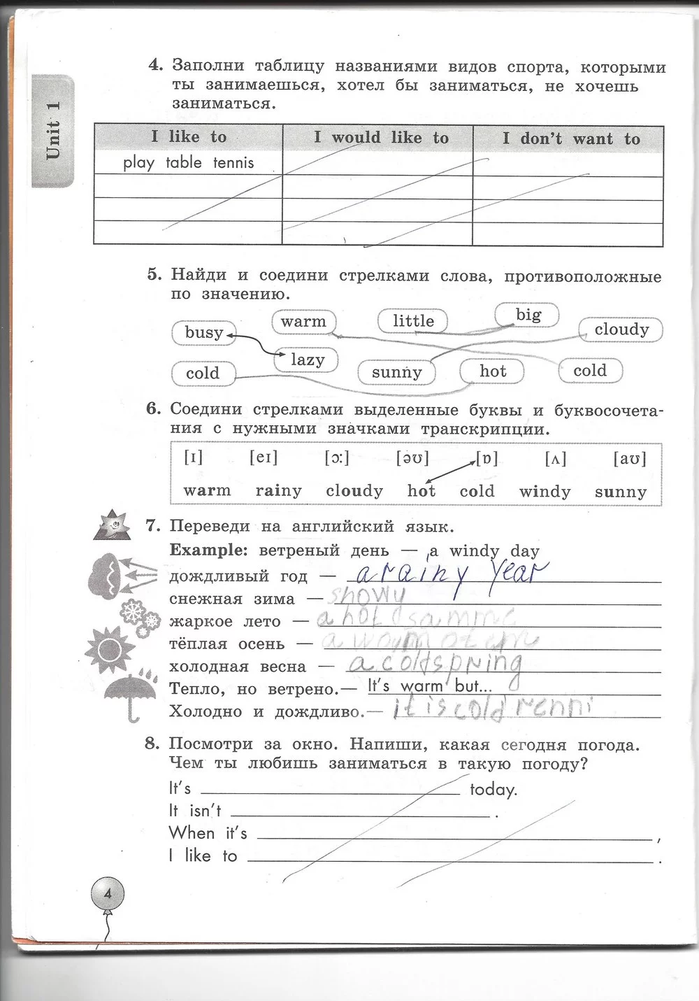 Решения домашних заданий по английскому языку 4 класс Биболетова М.З., Денисенко О.А., Трубанева Н.Н. 4 упражнение Рабочая тетрадь