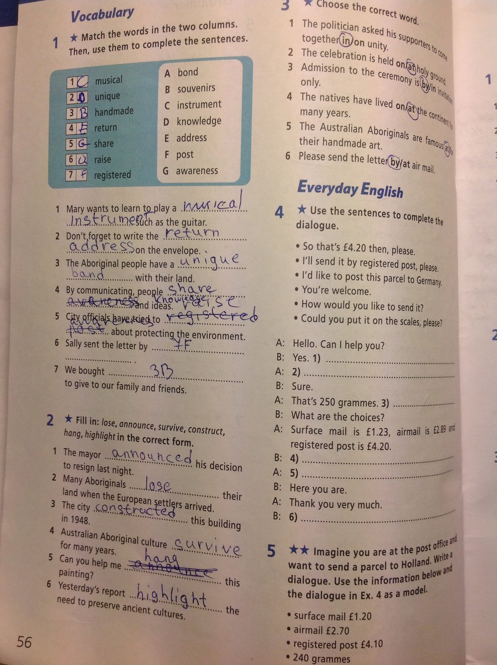 Решения домашних заданий по английскому языку 6 класс Баранова К.М., Дули Д., Копылова В.В. 56 упражнение Рабочая тетрадь