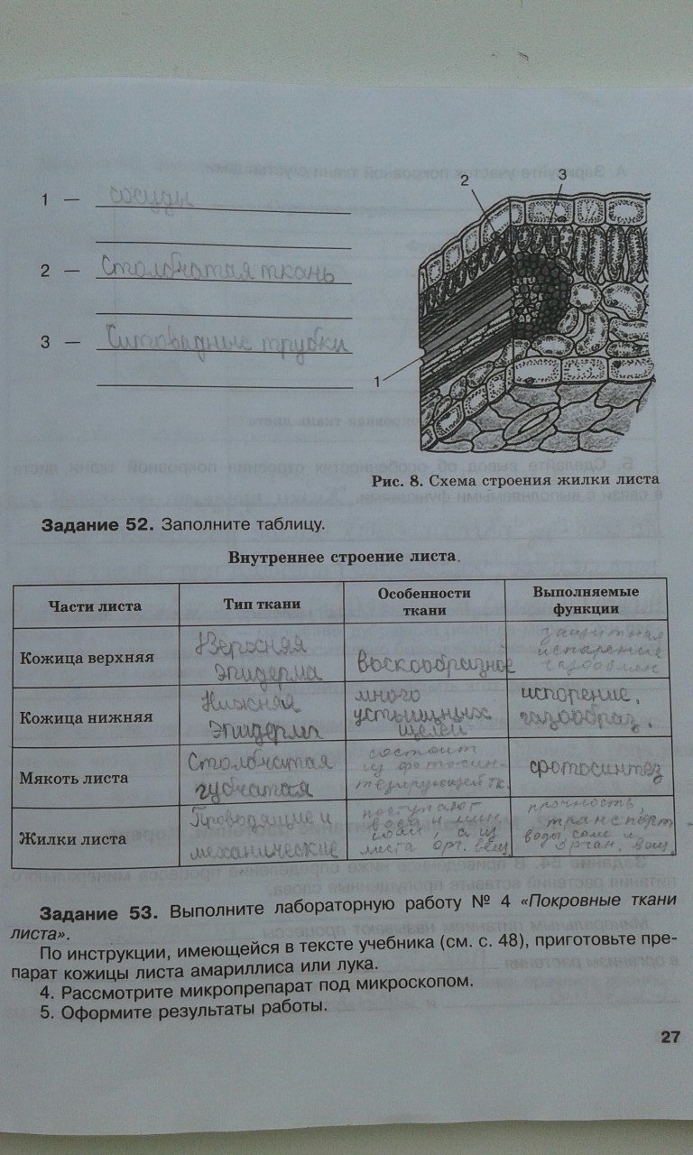 Решения домашних заданий по биологии 6 класс Хрыпова Р.Н., Житко И.В. 27 упражнение Рабочая тетрадь