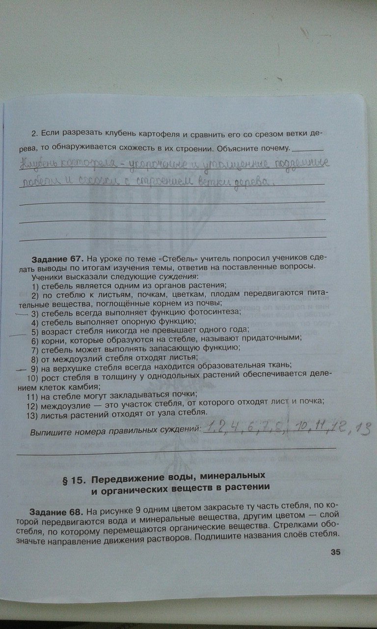 Решения домашних заданий по биологии 6 класс Хрыпова Р.Н., Житко И.В. 35 упражнение Рабочая тетрадь
