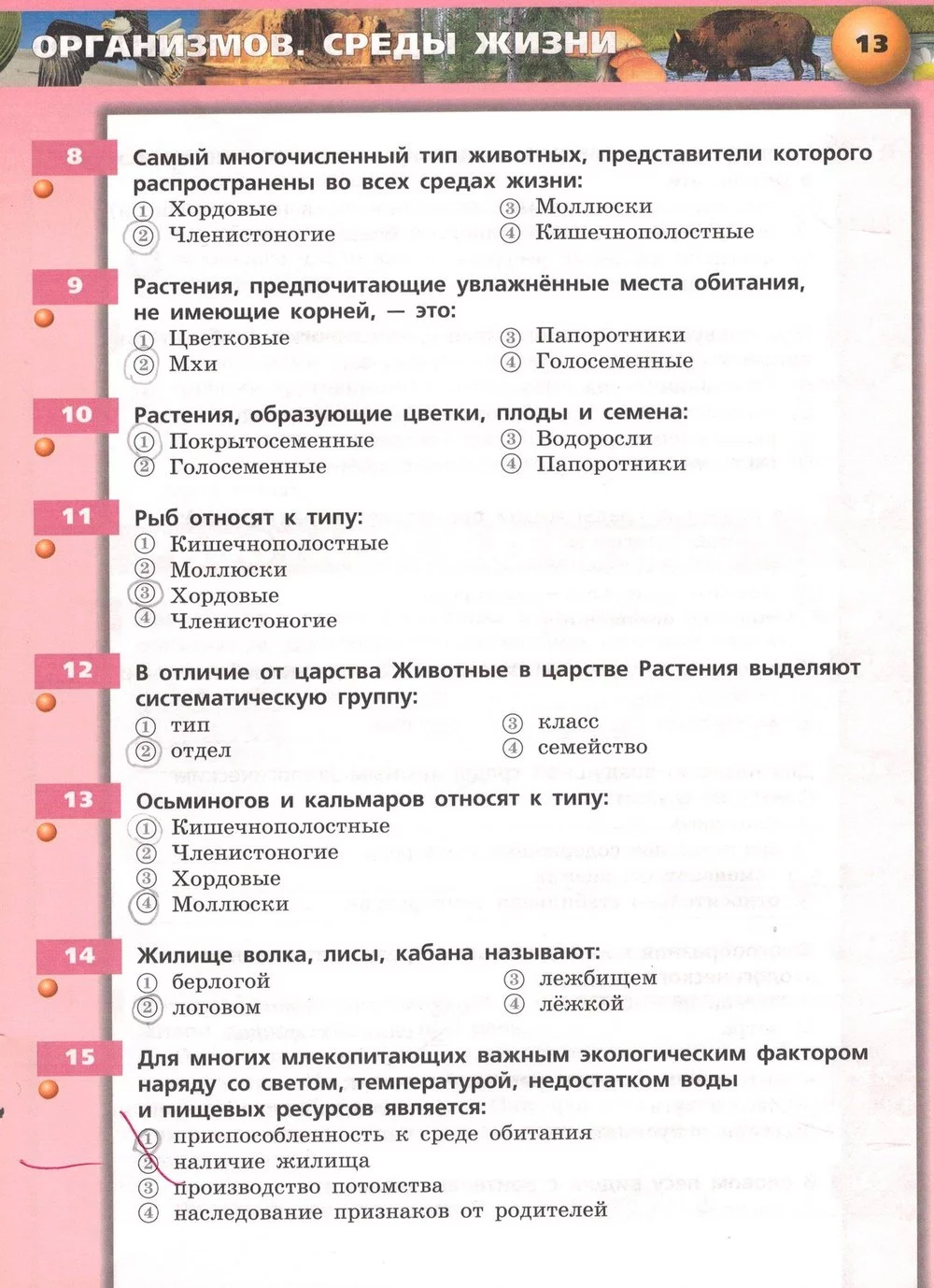Решения домашних заданий по биологии 6, 5 класс Сухорукова Л.Н., Кучменко B.C., Дмитриева Е.А 13 упражнение Рабочая тетрадь