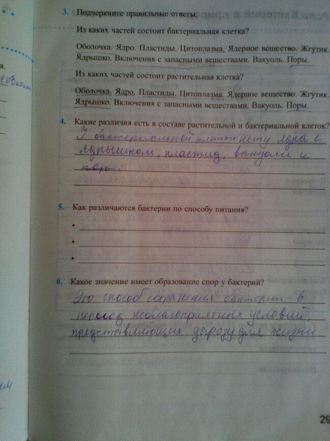 Решения домашних заданий по биологии 5 класс Преображенская Н.В 29 упражнение Рабочая тетрадь