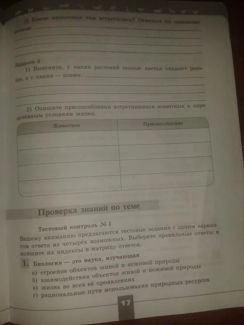 Решения домашних заданий по биологии 5 класс Пасечник В.В. 17 упражнение Рабочая тетрадь