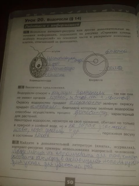 Решения домашних заданий по биологии 5 класс Пасечник В.В. 50 упражнение Рабочая тетрадь