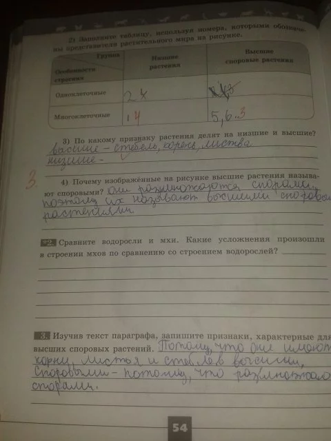 Решения домашних заданий по биологии 5 класс Пасечник В.В. 54 упражнение Рабочая тетрадь