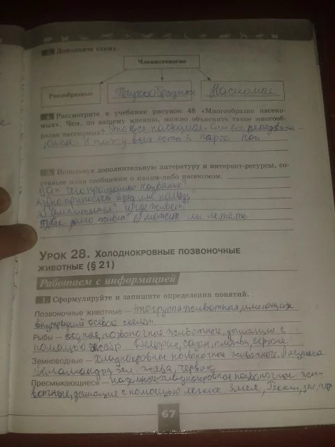 Решения домашних заданий по биологии 5 класс Пасечник В.В. 67 упражнение Рабочая тетрадь