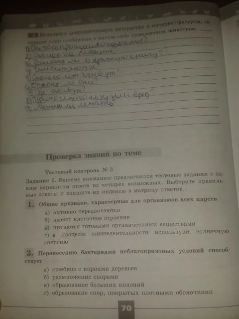 Решения домашних заданий по биологии 5 класс Пасечник В.В. 70 упражнение Рабочая тетрадь