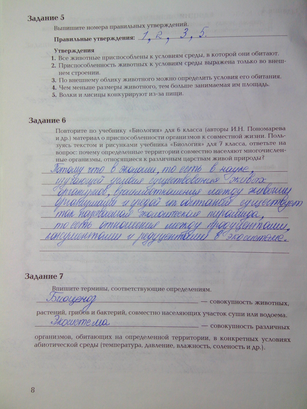 Решения домашних заданий по биологии 7 класс Суматохин С.В., Кучменко В.С. 8 упражнение Рабочая тетрадь
