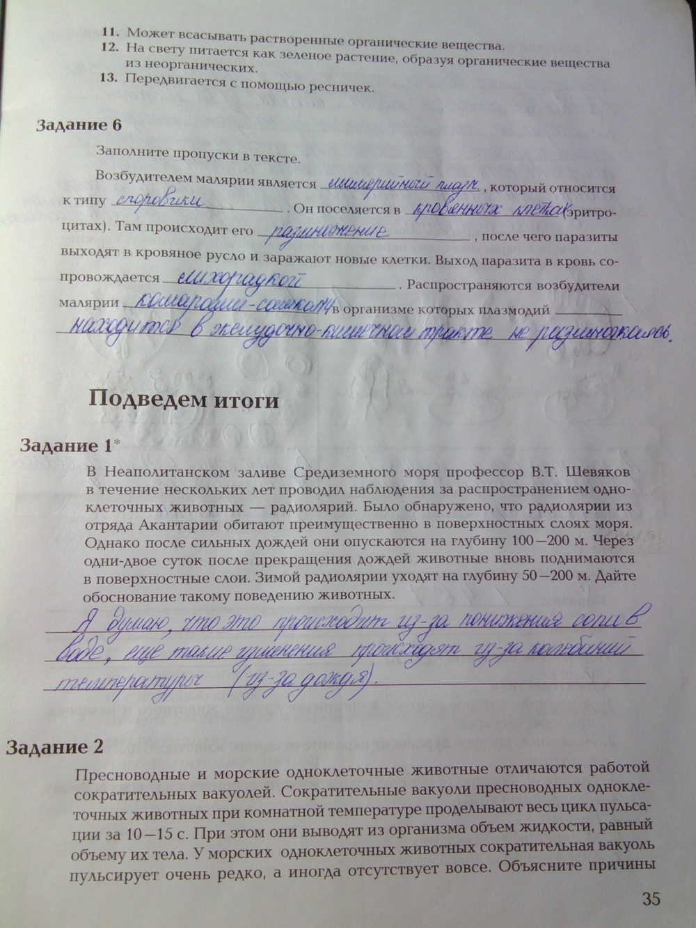Решения домашних заданий по биологии 7 класс Суматохин С.В., Кучменко В.С. 35 упражнение Рабочая тетрадь