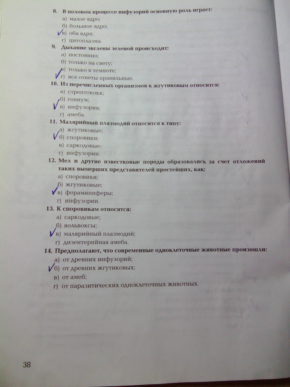 Решения домашних заданий по биологии 7 класс Суматохин С.В., Кучменко В.С. 38 упражнение Рабочая тетрадь