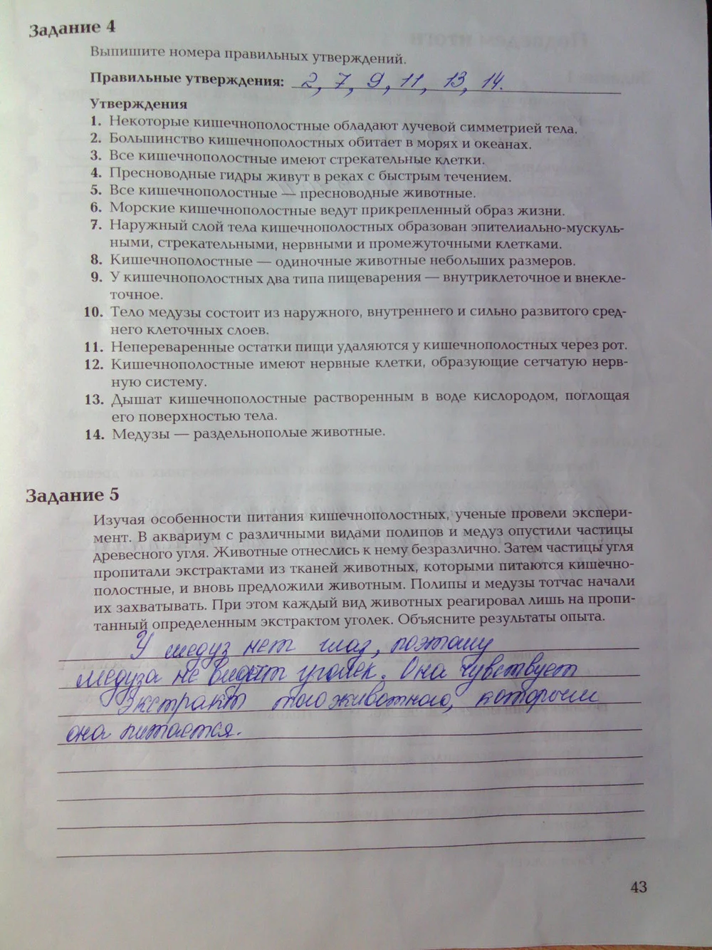 Решения домашних заданий по биологии 7 класс Суматохин С.В., Кучменко В.С. 43 упражнение Рабочая тетрадь