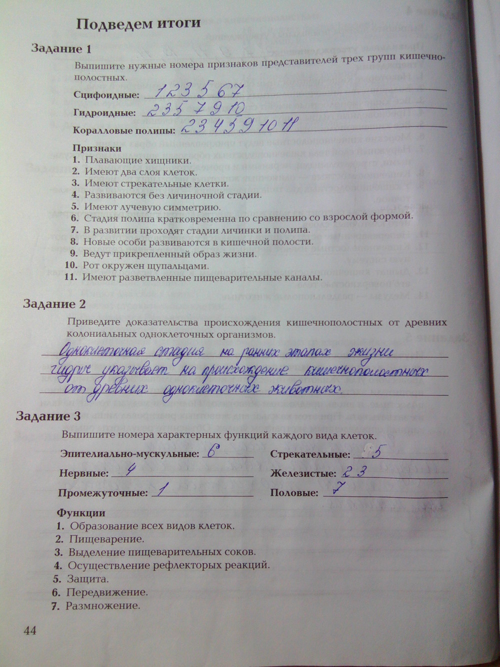 Решения домашних заданий по биологии 7 класс Суматохин С.В., Кучменко В.С. 44 упражнение Рабочая тетрадь