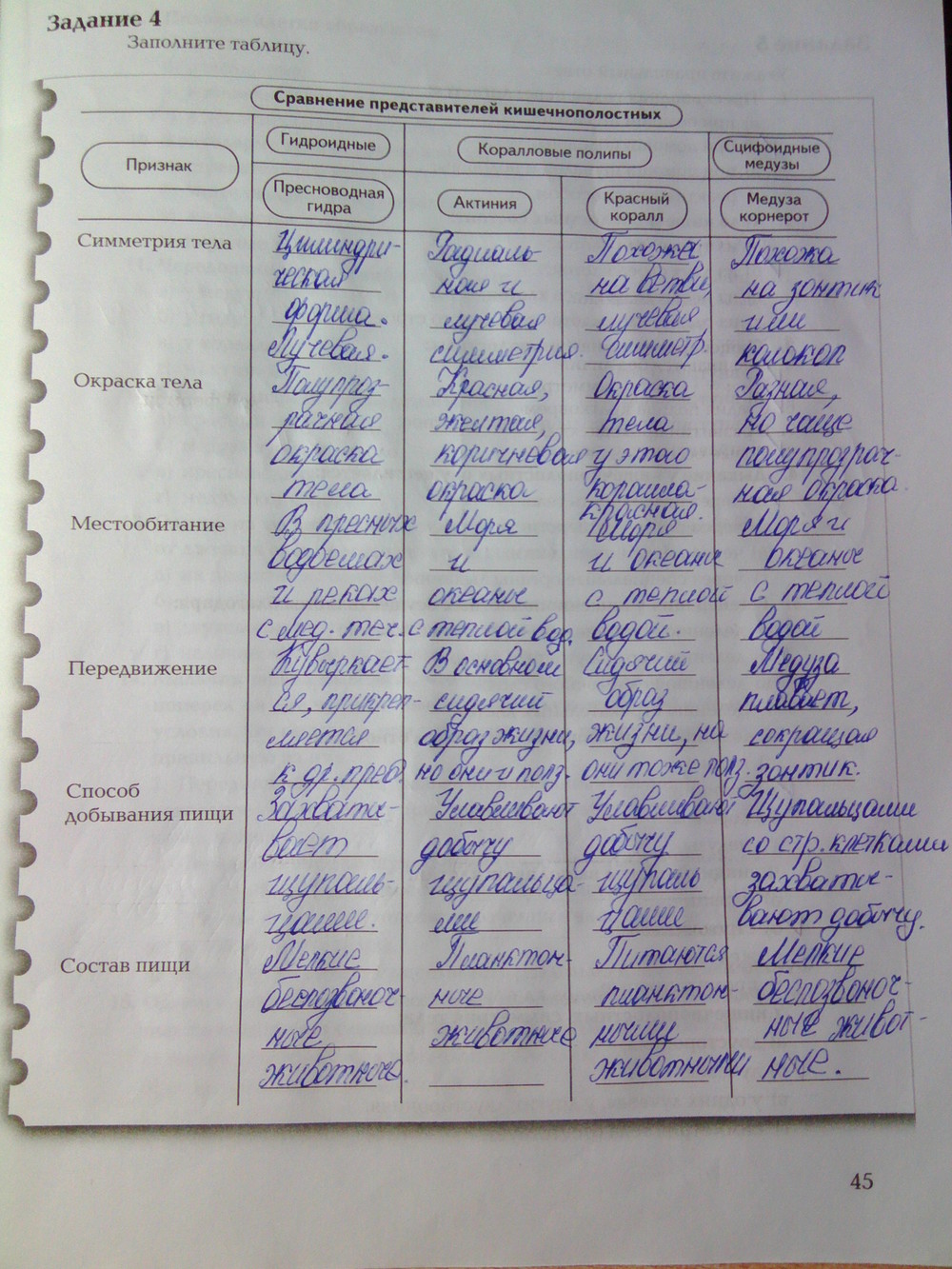 Решения домашних заданий по биологии 7 класс Суматохин С.В., Кучменко В.С. 45 упражнение Рабочая тетрадь