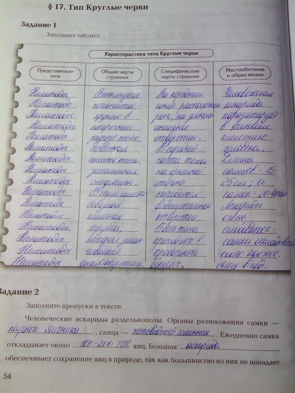 Решения домашних заданий по биологии 7 класс Суматохин С.В., Кучменко В.С. 54 упражнение Рабочая тетрадь