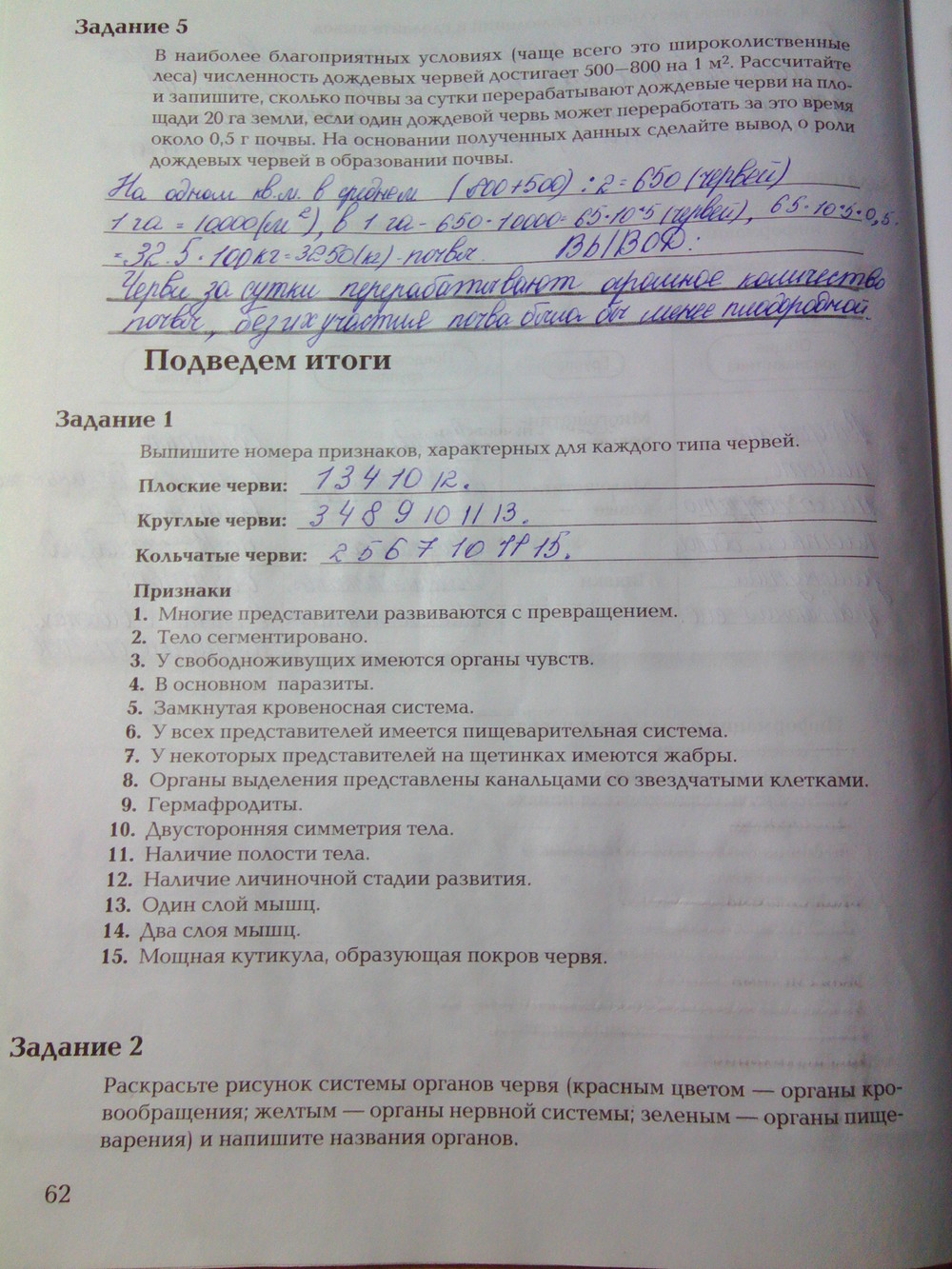 Решения домашних заданий по биологии 7 класс Суматохин С.В., Кучменко В.С. 62 упражнение Рабочая тетрадь