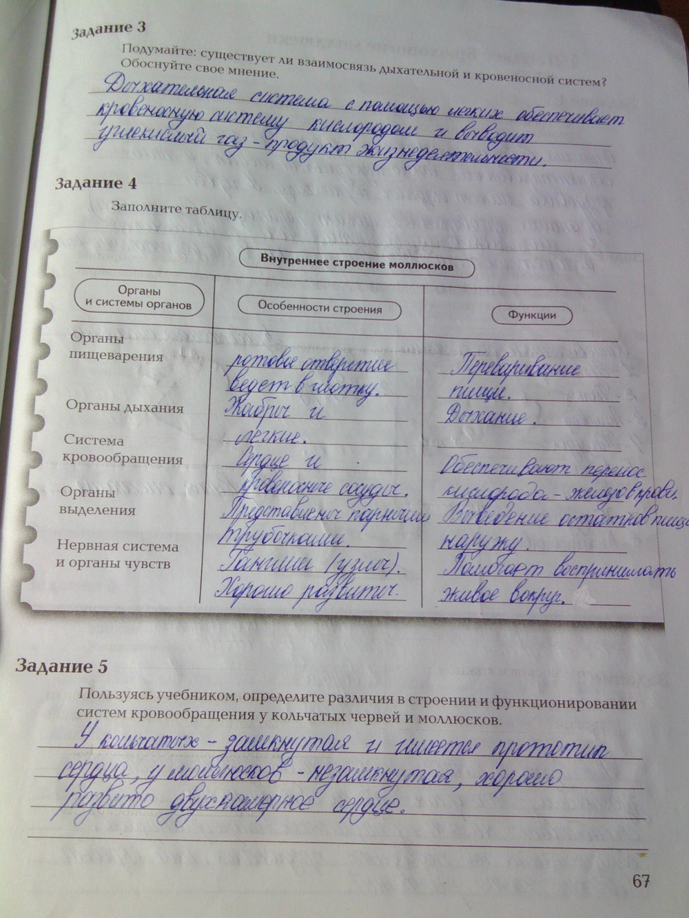 Решения домашних заданий по биологии 7 класс Суматохин С.В., Кучменко В.С. 67 упражнение Рабочая тетрадь