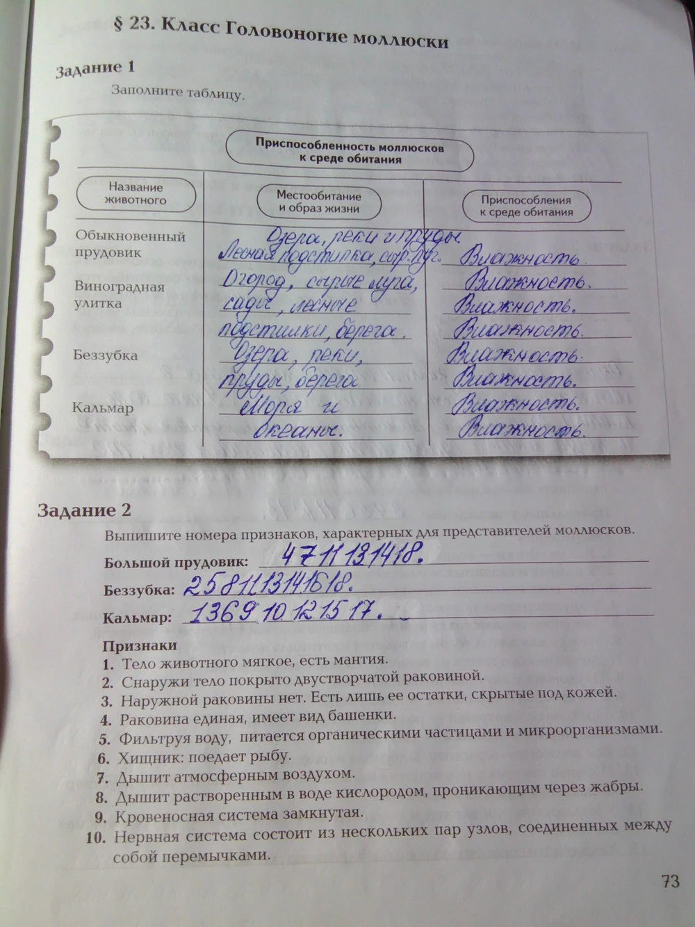 Решения домашних заданий по биологии 7 класс Суматохин С.В., Кучменко В.С. 73 упражнение Рабочая тетрадь